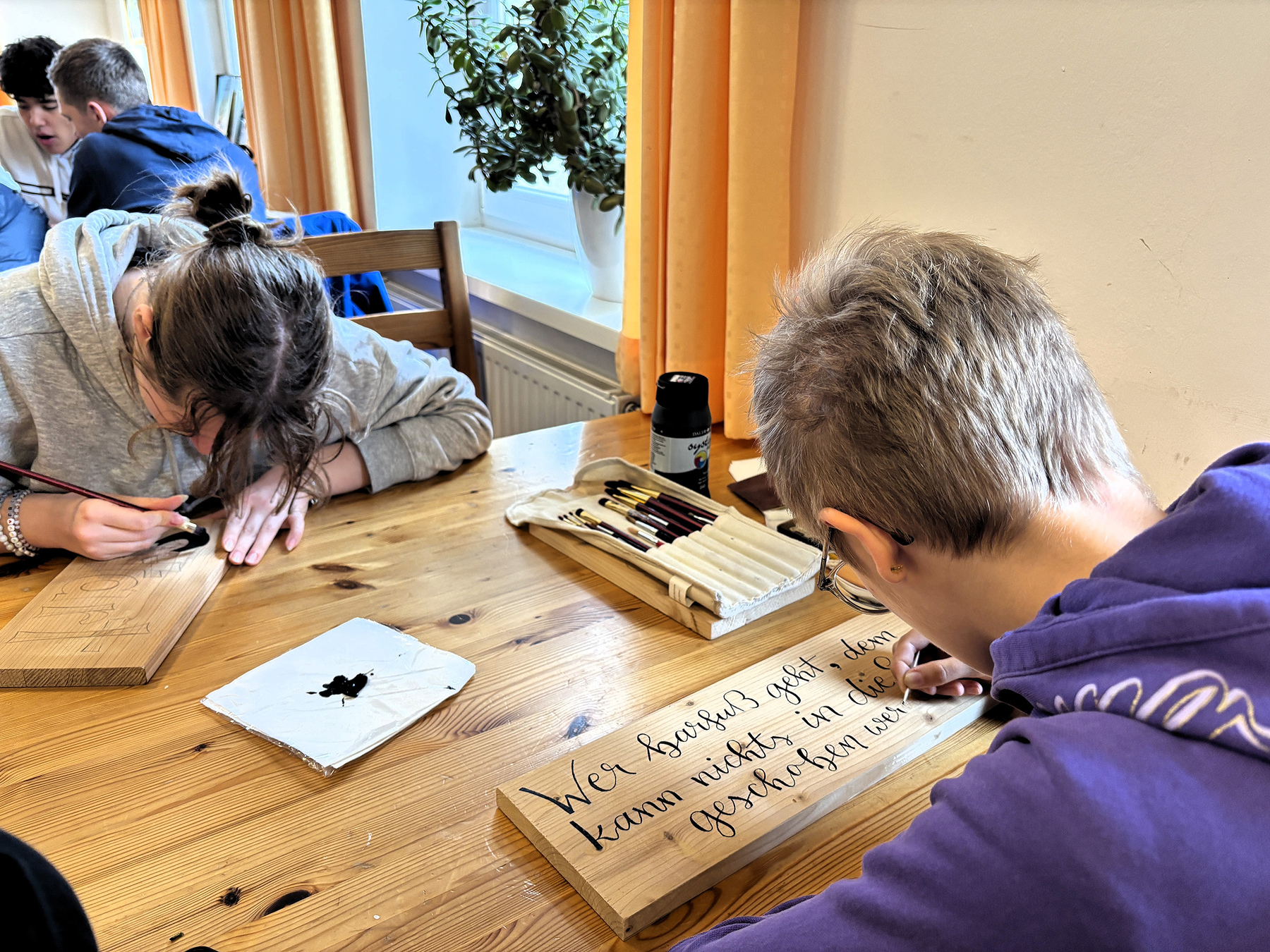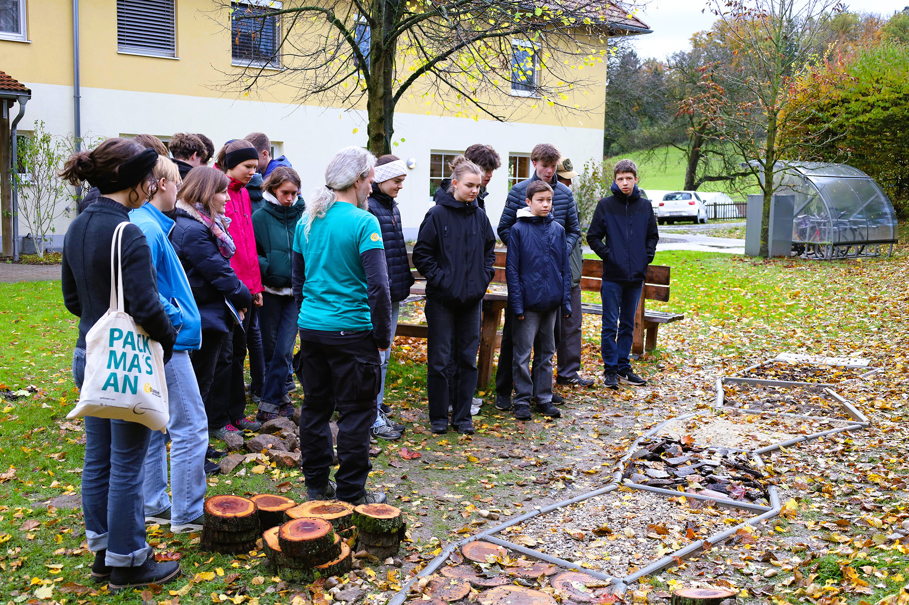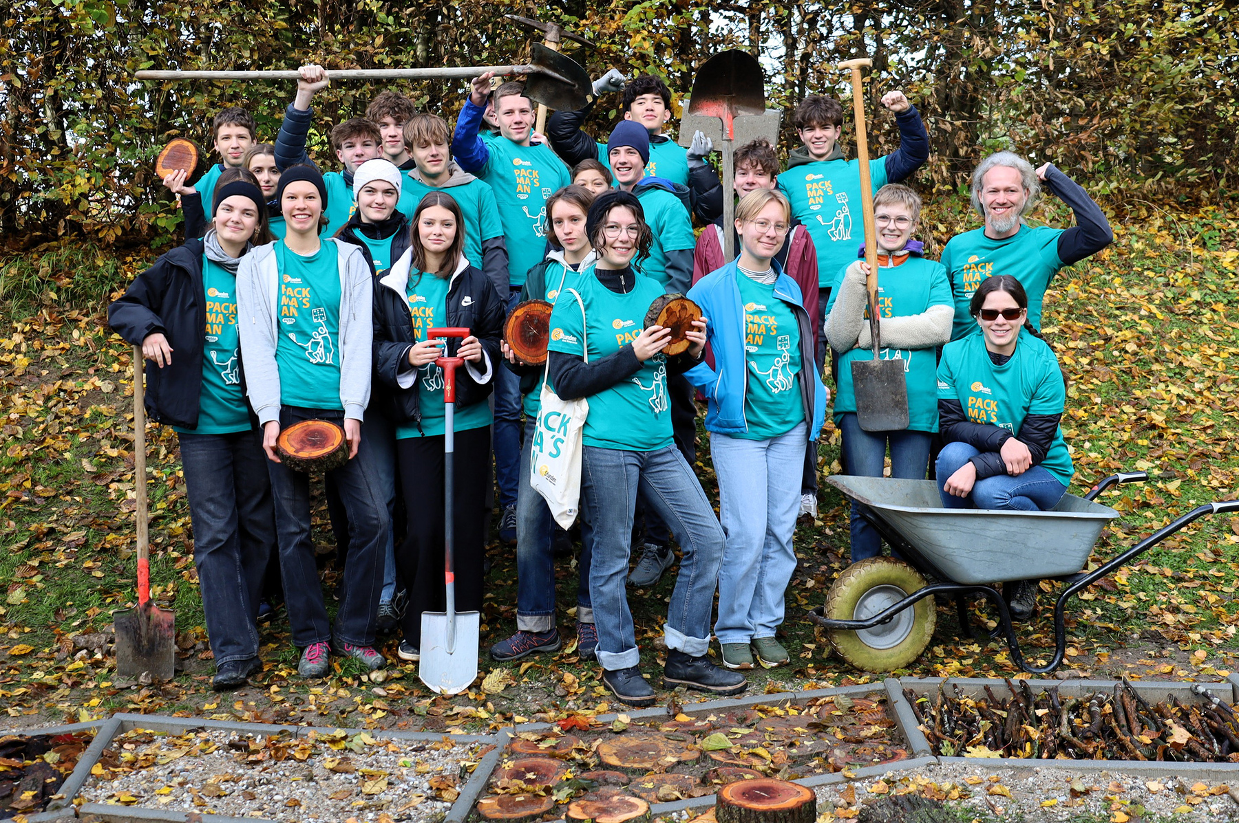 Sophie (16) erklärt den Ablauf genauer: „Es hat sich ein bisschen abgewechselt. Am ersten Tag haben die meisten Leute gepuddelt oder Sachen gesammelt und am zweiten Tag haben wir dann die Umrandung gemacht.“ Es war schön, dass wir alle zusammengearbeitet haben, also Teamwork, das war für unsere Klasse sehr gut.“