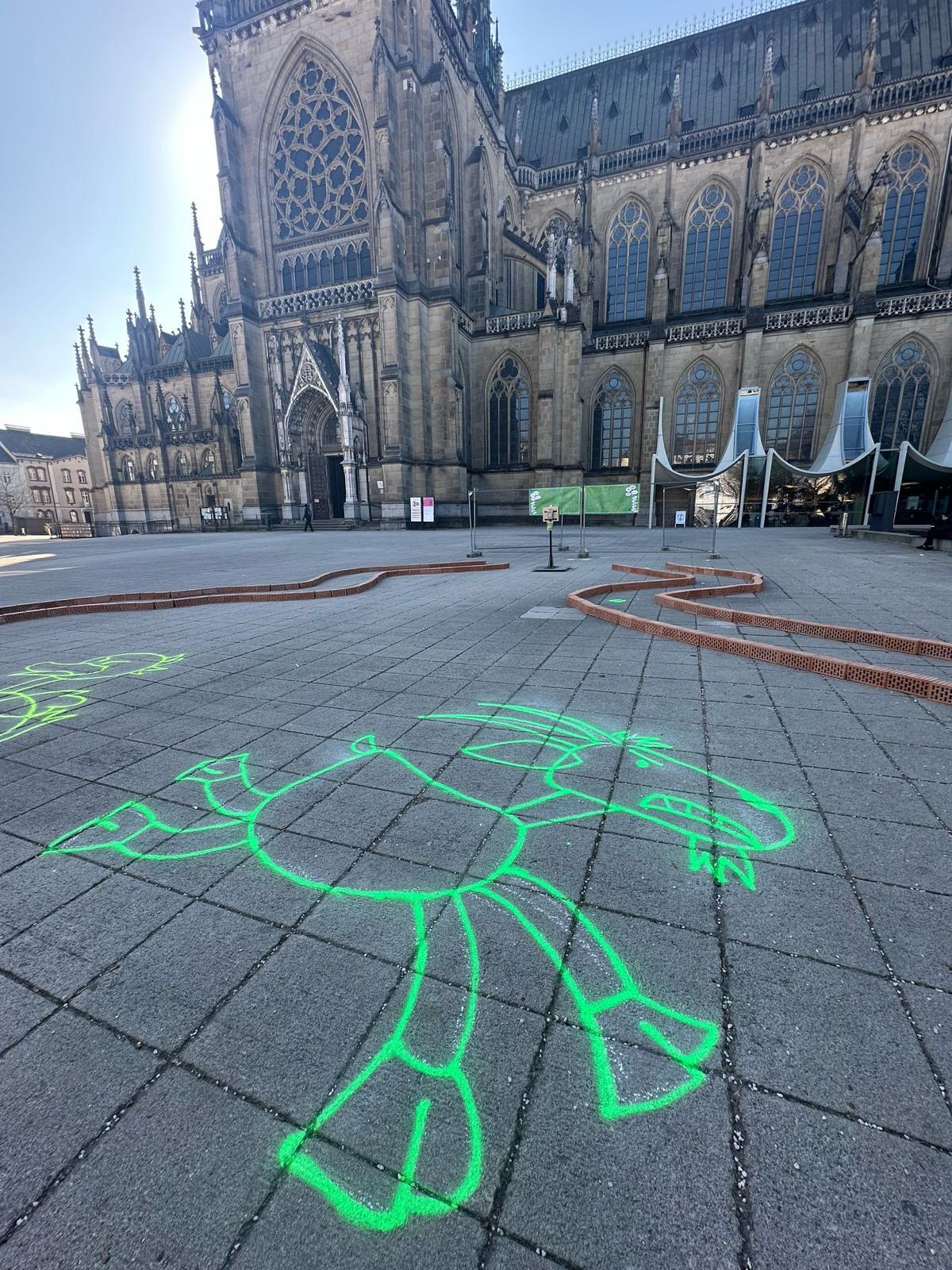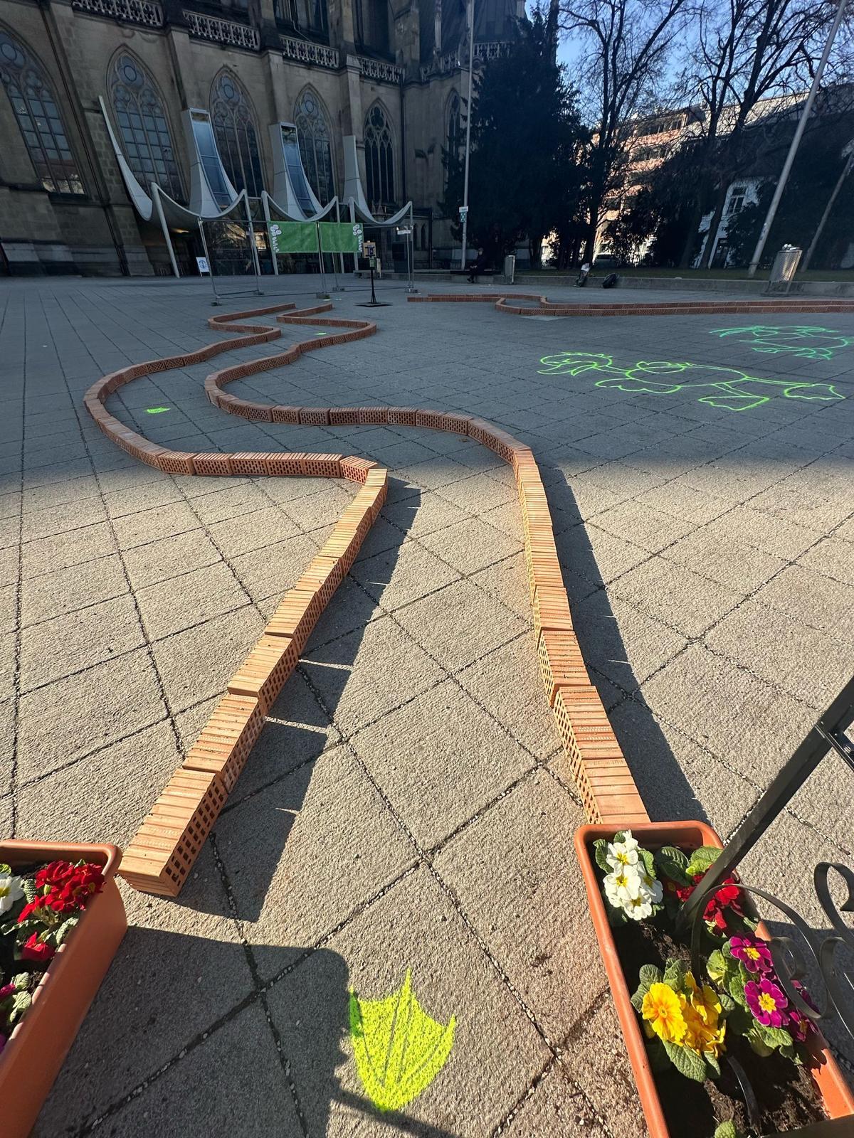 Du bist herzlich eingeladen, deinen Weg durch die Installation zu beginnen. Starte an einem der beiden Rosenbögen, nimm dir ein kleines Heftchen und folge den Spuren – sei es ein Hufabdruck oder ein Watschelfuß. Seite für Seite entfaltet sich die Geschichte von Ziege und Gans in einer Kurzfassung mit begleitenden Impulsfragen.