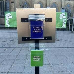 Falls du selbst jemanden um Verzeihung bitten möchtest, kannst du dir eine Postkarte mitnehmen und sie der betreffenden Person schicken. Manchmal kann eine kleine Geste eine große Wirkung haben.