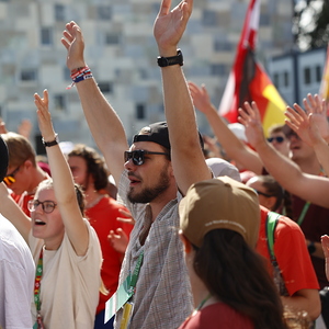 An drei Vormittagen gab es bei sogenannten Rise-up-Meetings die Gelegenheit zum Austausch zwischen den jungen Menschen und Bischöfen zu Fragen des Lebens und des Glaubens mit anschließender Messfeier.