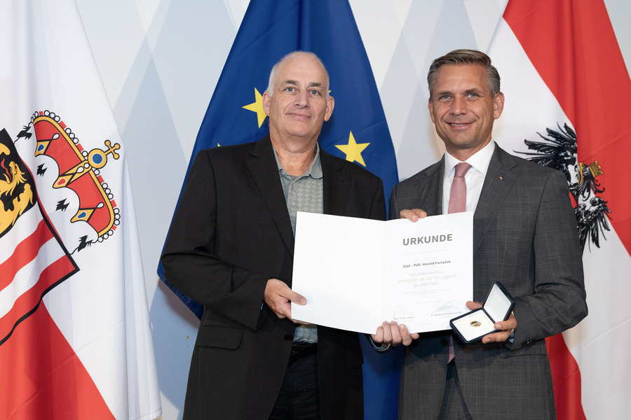 In den Reigen der Geehrten fügen sich Stefanie Hinterleitner und Harald Fartacek aufgrund ihrer Leistungen nahtlos ein. Geehrt wurden sie vom Land Oberösterreich. Und zwar mit dem Ehrenzeichen „Verdienste um die oö. Jugend“. Weil beide sich in ihrer jahrelangen haupt- und ehrenamtlichen Tätigkeit für Jugendliche eingesetzt und engagiert haben. Eingereicht wurden beide von der Katholischen Jugend OÖ, bei der sie auch viele Jahre gewirkt und auch dort ihre Spuren hinterlassen haben. Wir sagen ein herzliches Dankeschön für all das Positive, das den beiden zu verdanken ist, und gratulieren herzlichst!