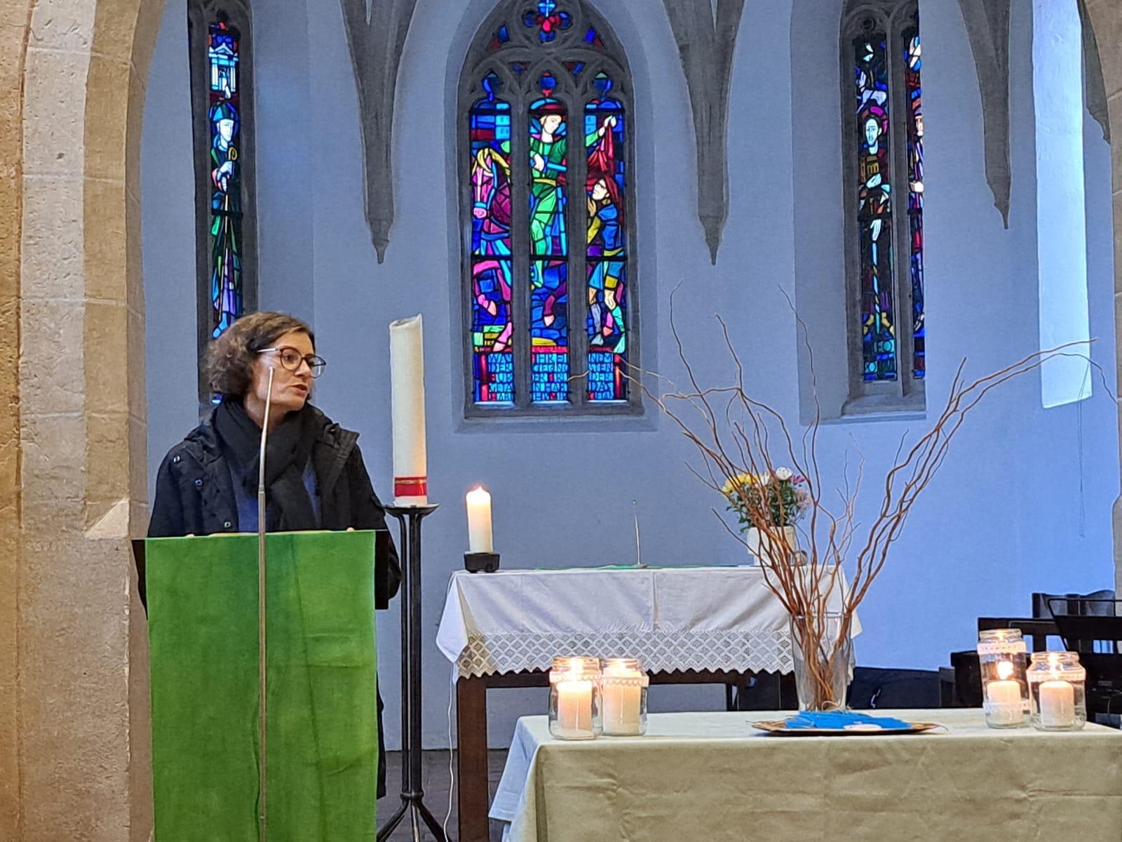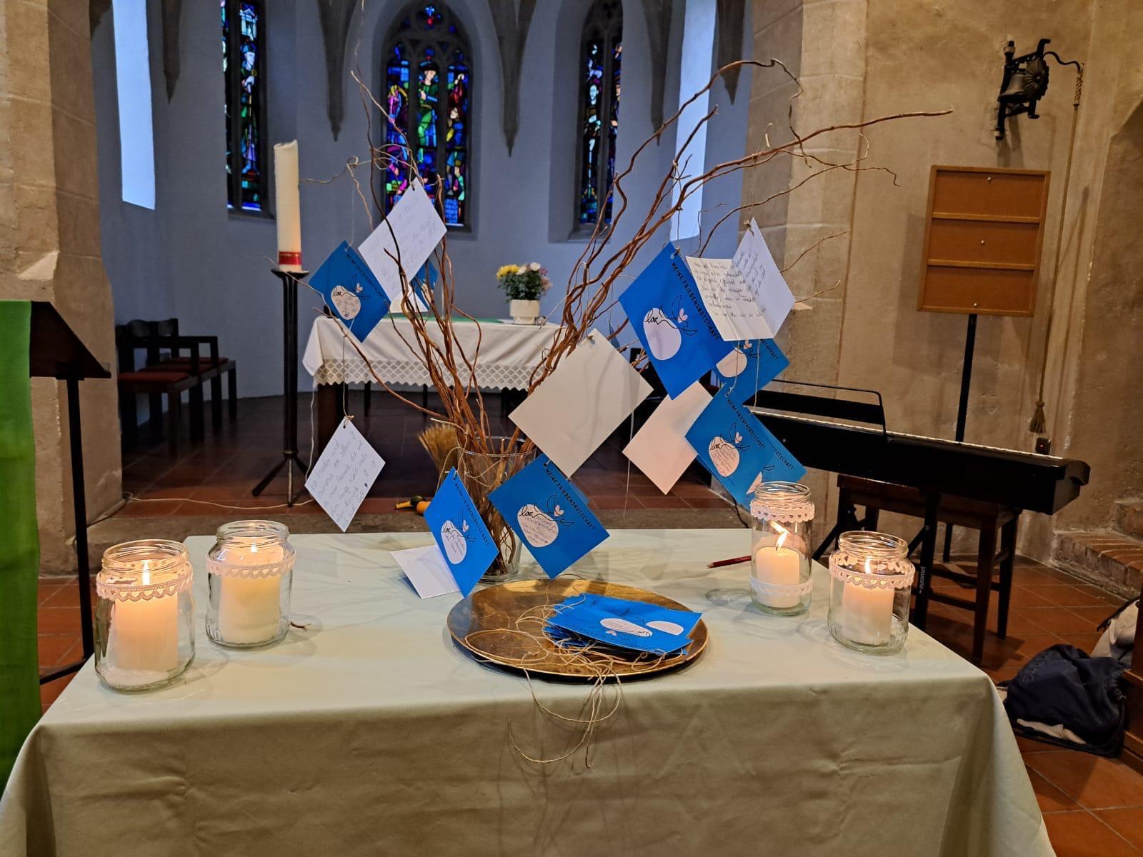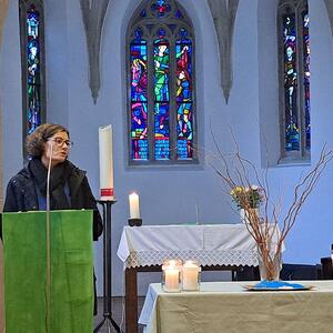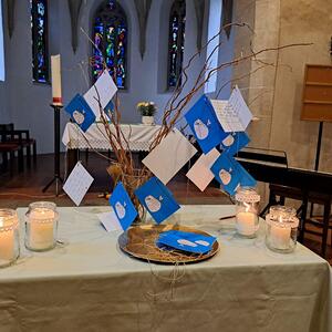 Verena Lorber vom Jägerstätter-Institut vertiefte in einem kurzen Impuls das Vermächtnis von Franz und Franziska Jägerstätter. Ihr Leben zeigt, wie wertvoll es ist, für den Frieden einzustehen, und dass wir alle, im Kleinen oder Großen, etwas dafür tun können. Danach wurden die Teilnehmenden eingeladen, ihre persönlichen Friedensbotschaften aufzuschreiben und an einen „Friedensbaum“ in der Kirche zu hängen.