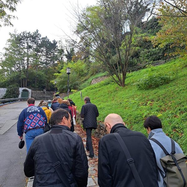 Um 15.15 Uhr startete die Gruppe auf dem Hauptplatz bei der Dreifaltigkeitssäule und begab sich auf den Weg zur Martinskirche. Auf der Route durch die Innenstadt hielten sie immer wieder an, um sich von fünf kurzen Impulsen von Standing Together Vienna und Dialog:Abraham inspirieren zu lassen. Die Impulsgeber*innen aus Wien, die sich seit Jahren für Frieden und den Austausch zwischen Religionen einsetzen, brachten spannende Gedanken mit und machten deutlich, wie wichtig Frieden in jedem Umfeld ist und was es für die Menschen bedeutet, wenn kein Friede herrscht.