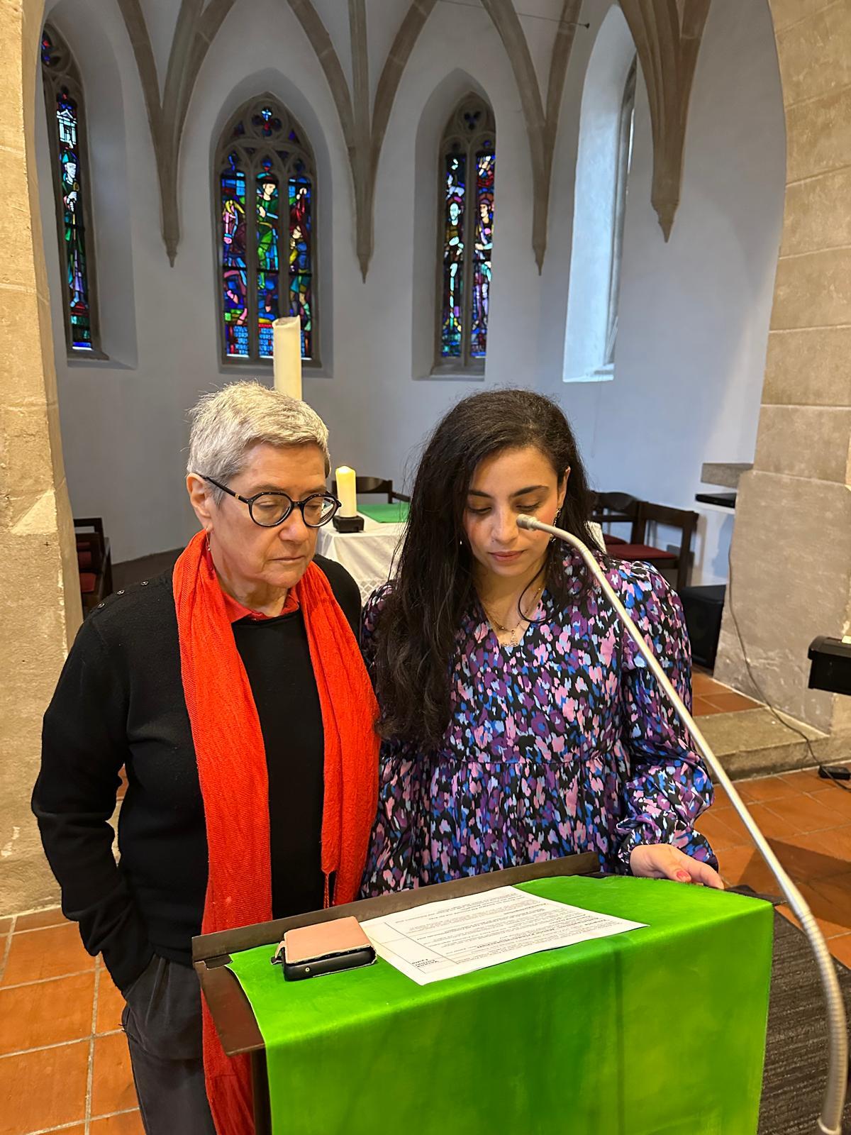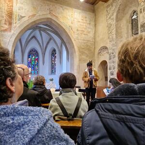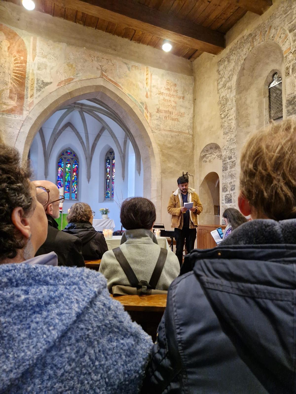 Um 16.00 Uhr versammelte sich die Gruppe in der Martinskirche, um gemeinsam zu beten und zur Ruhe zu kommen. In der besonderen Atmosphäre der Martinskirche, umgeben von Kerzen, und Symbolen, wurden Texte aus dem Tanach, dem Koran und der Bibel rund um das Thema Frieden gelesen. Es waren bewegende Momente: die Texte und Lieder aus jüdischer, muslimischer und christlicher Tradition luden die Teilnehmenden dazu ein, den Frieden als gemeinsames Anliegen zu sehen – eine Verbindung, die alle Religionen und Kulturen vereint.