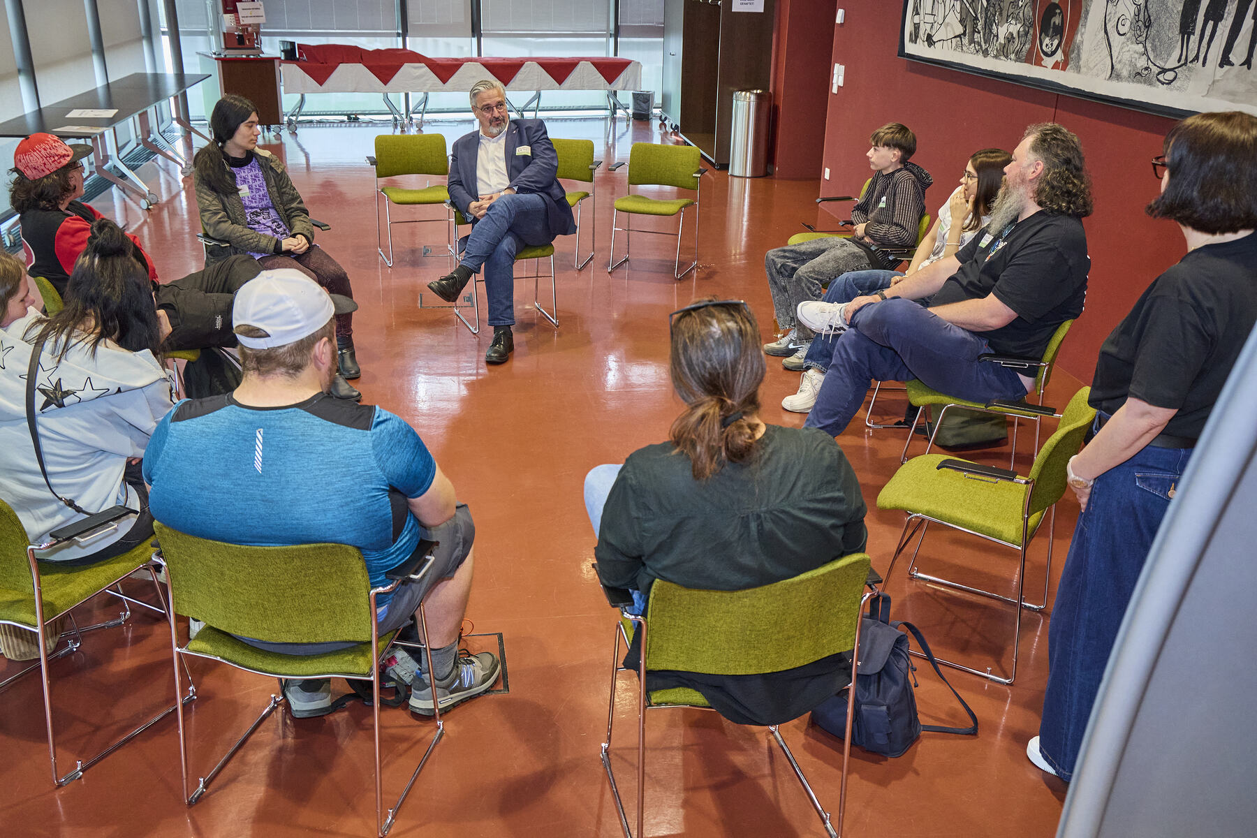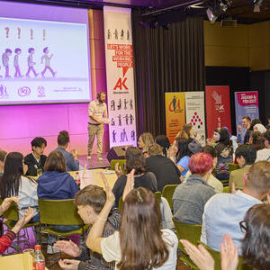 Auch dieses Jahr besuchte der Linzer Rapper Grandmaster Flow die Jugendlichen während der Workshops und nahm sich Zeit für ihre Anliegen. Innerhalb weniger als einer Stunde entstand daraus ein Song, der ihre Themen auf den Punkt bringt. Am Nachmittag wurde der Song als Einstieg den über 60 Entscheidungsträger*innen aus Politik, Kirche und Wirtschaft präsentiert – und sorgte für einen eindrucksvollen Auftakt der Dialogrunden: Hier geht's zum Song!