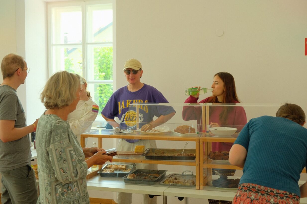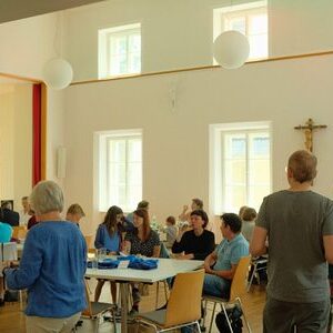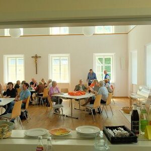 Nach dem Gottesdienst fand ein Dämmerschoppen im Pfarrzentrum statt. Neben farbenfroher Dekoration des Saals, wurde die Infobroschüre der KJ Gallneukirchen, thematische Flyer, Sticker, Klebetattoos und Plakate ausgelegt. Die Tischdeko wurde von der Katholischen Jungschar Gallneukirchen gebastelt. Bei Speis und Trank und angeregten Gesprächen klang der bunte Abend aus.