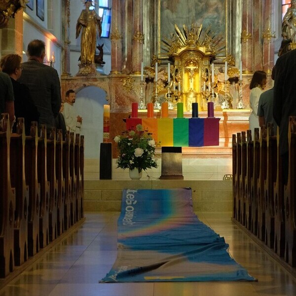 „Ich finde es beachtlich, dass sich die Katholische Jugend so intensiv mit der Realität von queeren Menschen auseinandersetzt. Sehr engagiert haben sich die Jugendlichen auf diesen Gottesdienst vorbereitet und diesen gestaltet. Sie haben damit einen Anstoß gegeben, dass die Lebensrealitäten von LGBTIQ*Personen mit ihren jeweiligen sexuellen Orientierungen und geschlechtlichen Identitäten in den Blick kommen. Sie haben zur Sichtbarkeit dieser Menschen beigetragen, die immer schon da waren, da sind und immer da sein werden. Gottes Welt und seine Menschen sind vielfältig und bunt, man kann auch sagen, regenbogenbunt. Gott schloss einst mit den Menschen seinen Bund und setzte als Bundeszeichen den Regenbogen in den Himmel. Unter Gottes Himmel haben alle Platz. Der Katholischen Jugend liegt daran, dass wir als Kirche für alle Menschen offen sind und alle akzeptieren. Diese Haltung haben vermutlich viele von uns. Die Katholische Jugend hat diese Haltung mit und in diesem Gottesdienst deutlich gezeigt. Danke!“ (Franz Harant, Regenbogenpastoral)