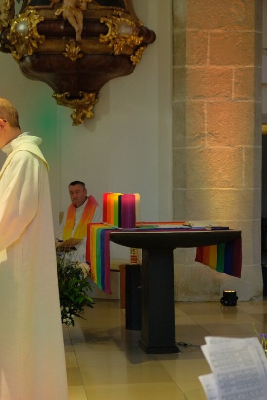 In den Predigtgedanken, welche Robert Janschek (Pastoralassistent) verfasste, wurden sieben Personas verschiedener Sexueller Orientierung oder Geschlechtsidentität vorgestellt und damit die Begriffe zu LGBTQIA+ erklärt. Franz Harant (Priester und Gründer der Regenbogenpastoral), welcher mit dem Leitungskreis den Gottesdienst vorbereitete und geleitet hätte, wurde aus gesundheitlichen Gründen von August Aichhorn vertreten.