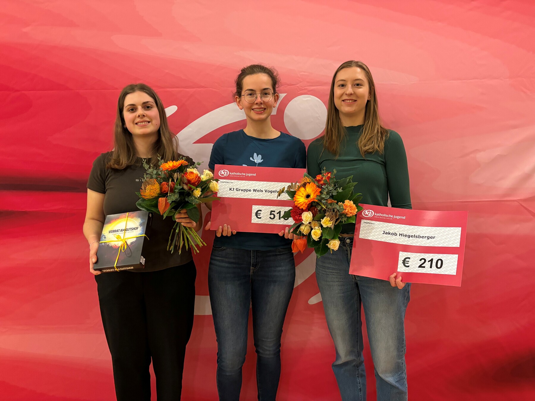 Bevor der musikalisch gestaltete offene Abend seinen Lauf nahm, gehörte die Bühne, und sogar ein ausgerollter roter Teppich, den besonders engagierten Ehrenamtlichen. Mit einer wertschätzenden Laudatio hob Diözesanjugendseelsorger Vitus Glira hervor, wie viel Herzblut, Zeit und Kreativität Ehrenamtliche in der kj oö investieren - in Pfarrgemeinden, Teams, Projekten und weit darüber hinaus. Über den roten Teppich durfte auch die KJ-Gruppe Vogelweide schreiten, die für ihre engagierte Arbeit ausgezeichnet wurde. Ein besonderes Spotlight galt Jakob Hiegelsberger, Jugendleiter der KJ Vogelweide, der für seinen außergewöhnlichen Einsatz eine eigene Ehrung erhielt. Ebenso wurde Magdalena Lorenz für ihr herausragendes Engagement gewürdigt: Von 2020 bis 2024 gestaltetete sie die Kaholische Jugend OÖ als ehrenamtliche Vorsitzende maßgeblich mit.