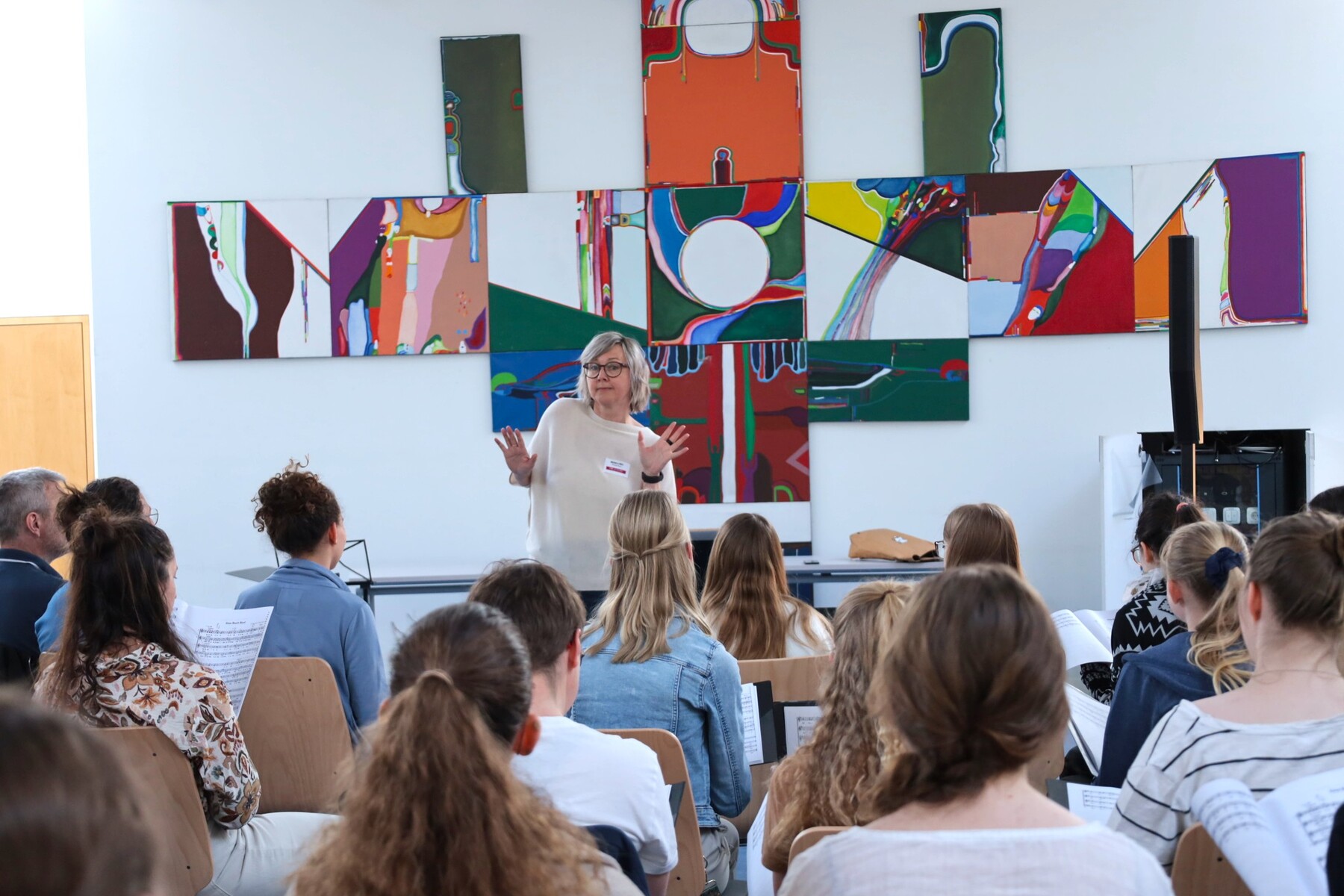Danach ging es für die Teilnehmer*innen in die Workshops, die ein breites musikalisches Spektrum abdeckten. Zur Auswahl standen Volkslieder mit Andrea Kapeller, Pop mit Michaela Wolf und Rap mit Florian Birklbauer alias Grandmasterflow – ein bunter Mix, bei dem für alle etwas dabei war. Es wurde gesungen, ausprobiert und viel gelacht. Am Ende konnte sich das Ergebnis auf jeden Fall hören lassen.