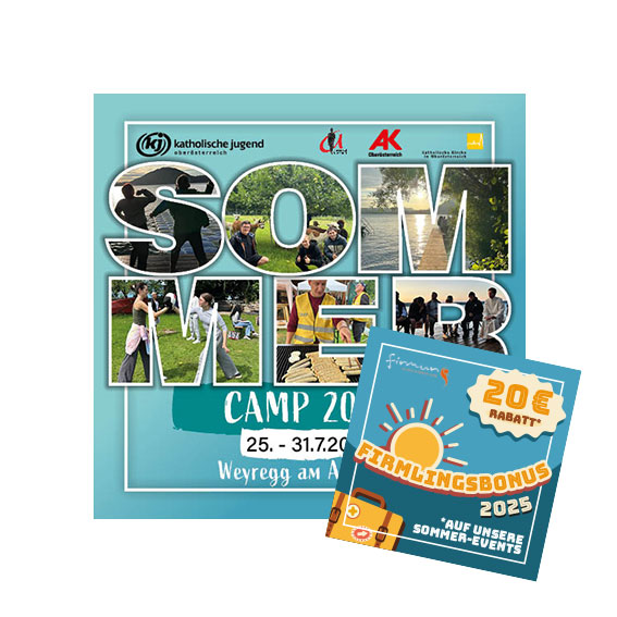 Eine Woche campen in Weyregg am Attersee mit direktem Seezugang. Coole Workshops, Ausflüge, jede Menge Zeit zum Chillen und gute Gespräche warten auf dich.