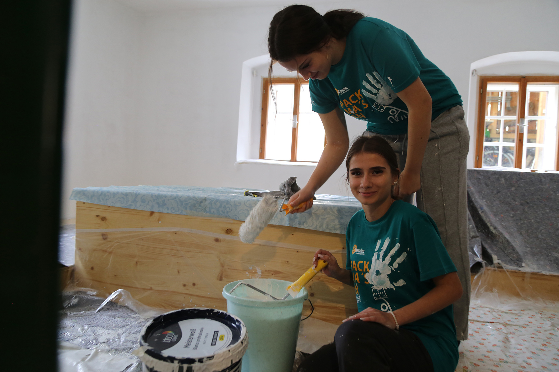Eyla (15) und Dina (14) erzählten, dass sie gemeinsam eine Wand gestrichen hätten. Dina sagte: „Ich fand es sehr cool, es hat Spaß gemacht und wir durften Musik hören.“ Sie betonte, dass ihr das Projekt richtig gut gefallen habe, weil sie viel alleine arbeiten und dabei Neues lernen konnte.