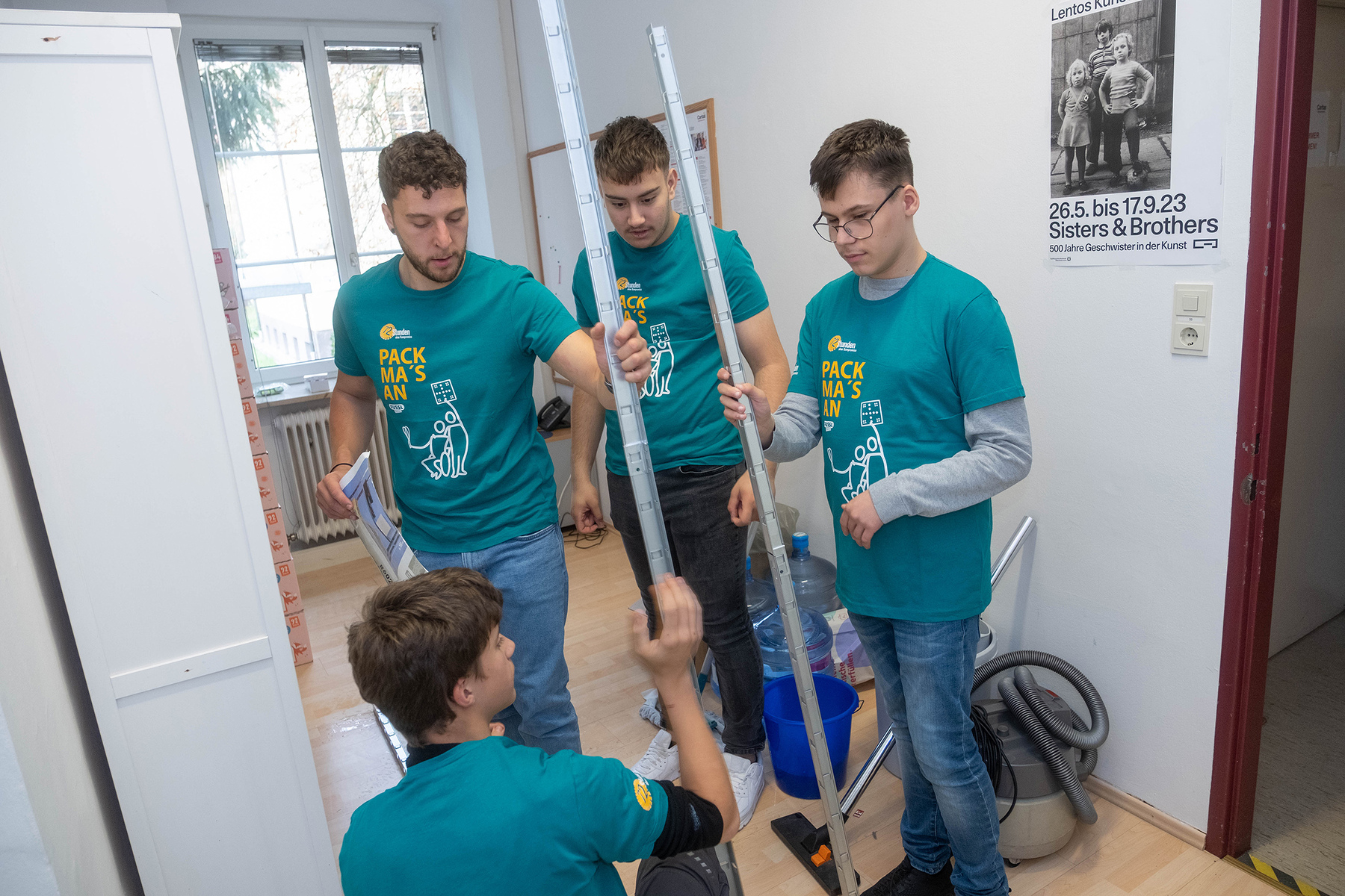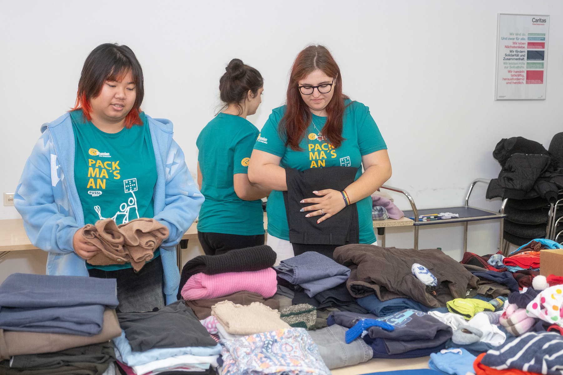 Sieben Jugendliche vom Lehrgang AFit (Ausbildungsfit) aus Enns packten in der Caritas-Sozialberatung in Linz kräftig mit an, wo armutsbetroffene Menschen Beratung und Unterstützung erhalten. Zuerst wurde der Sachspenden-Lagerraum auf Vordermann gebracht, Wände gestrichen, Regale aufgebaut und gespendete Kleidung eingeräumt. Zusätzlich führten die Jugendlichen eine „Aktion Kilo“ durch: Vor den Supermärkten sprachen sie die Kund*innen an und baten um haltbare Lebensmittel und Hygieneartikel für die Sozialberatung. „Einfach Leuten helfen, dort wo ich kann. Das macht Sinn“, erklärt Ari, warum sie sich engagiert.