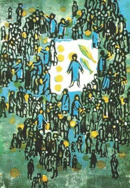 Die Geste des Austeilens und Schenkens setzt sich in den Jüngern fort, die nach allen Seiten ausströmen, um den Hunger der Menge zu stillen.