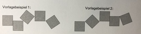 1. Teil: Ein GM erhält ein Bild (siehe unten), das sie den anderen GM schildern muss, ohne es ihnen zu zeigen. Nach Ablauf einer kurzen Vorbereitungszeit muss es versuchen, den anderen GM das Gebilde so genau zu erklären, dass jedes GM dieses auf einem Blatt Papier nachzeichnen kann. Dabei dürfen weder Fragen gestellt, noch Hilfen gegeben werden. Die GB stoppt die Zeit, die benötigt wird, bis alle die Zeichnung fertiggestellt haben.