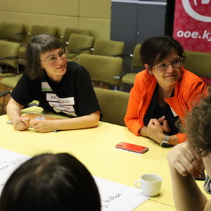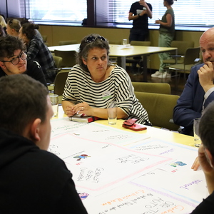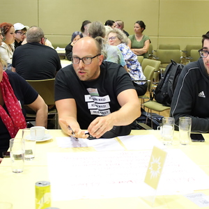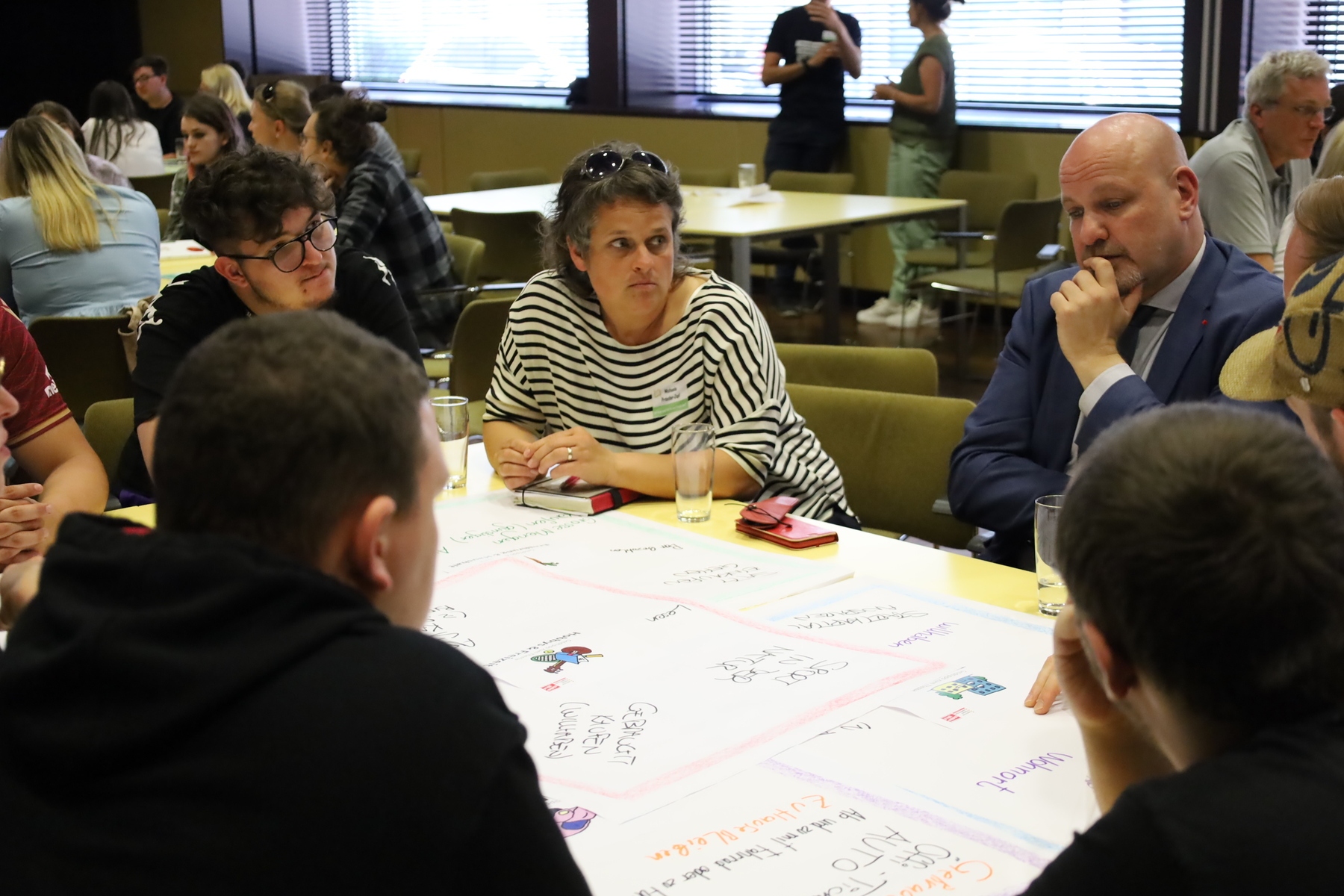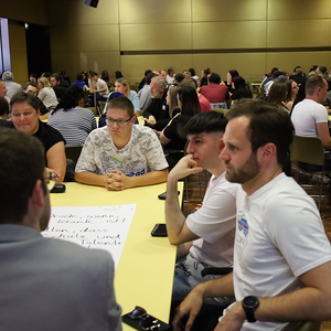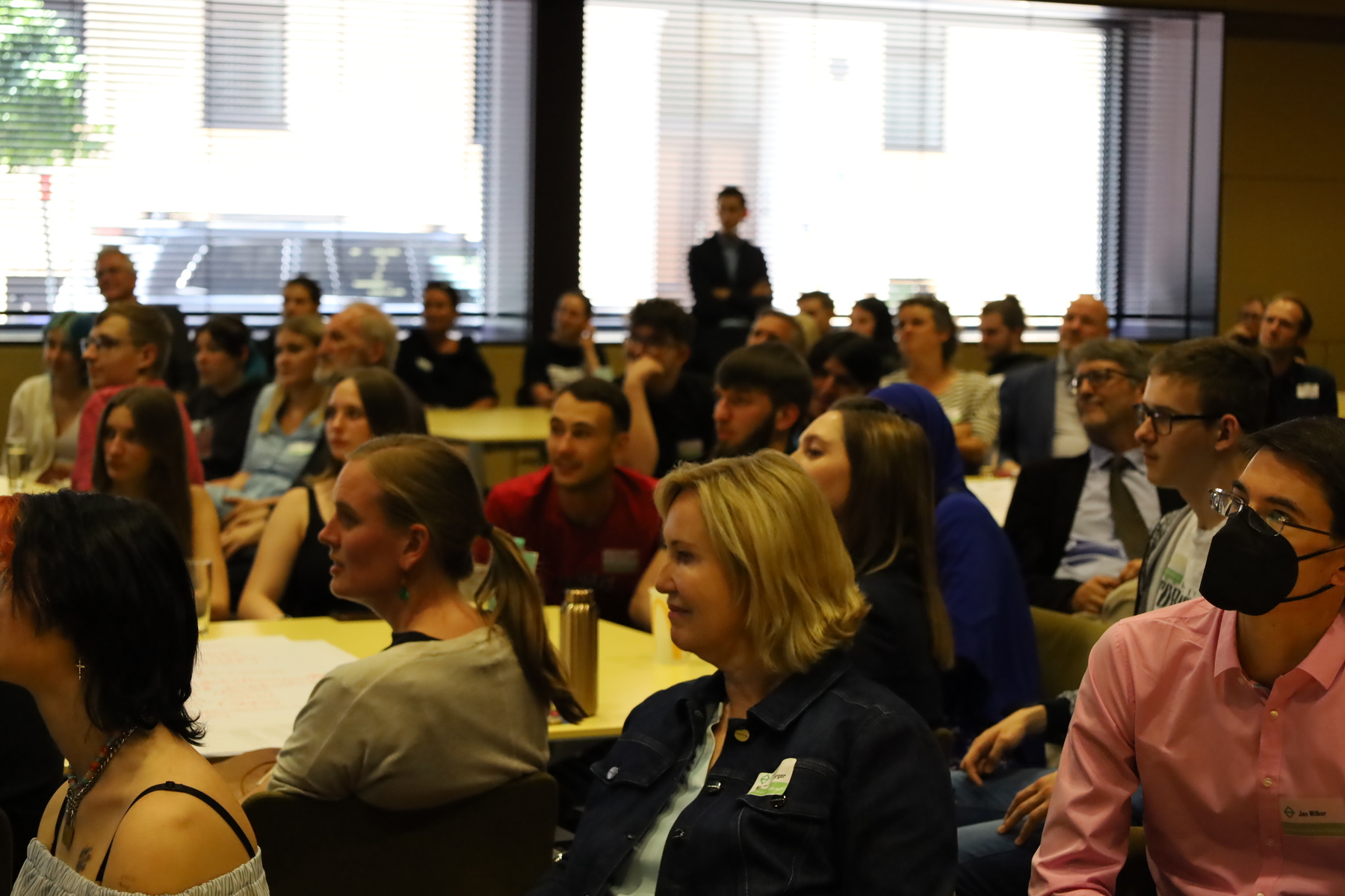 Im Anschluss daran bot sich den Teilnehmer*innen die Möglichkeit, in persönlichen Tischrunden direkt mit den Entscheidungsträger*innen in einen Dialog zu treten und ihre individuellen Anliegen zu äußern. Die Sorgen und Anliegen der Jugendlichen und die Standpunkte der Entscheidungsträger*innen wurden sorgfältig festgehalten
