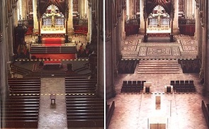 Die Gestaltung des Altarbereiches zur gemeinsamen Feier im Mariendom Linz