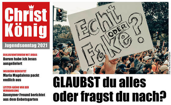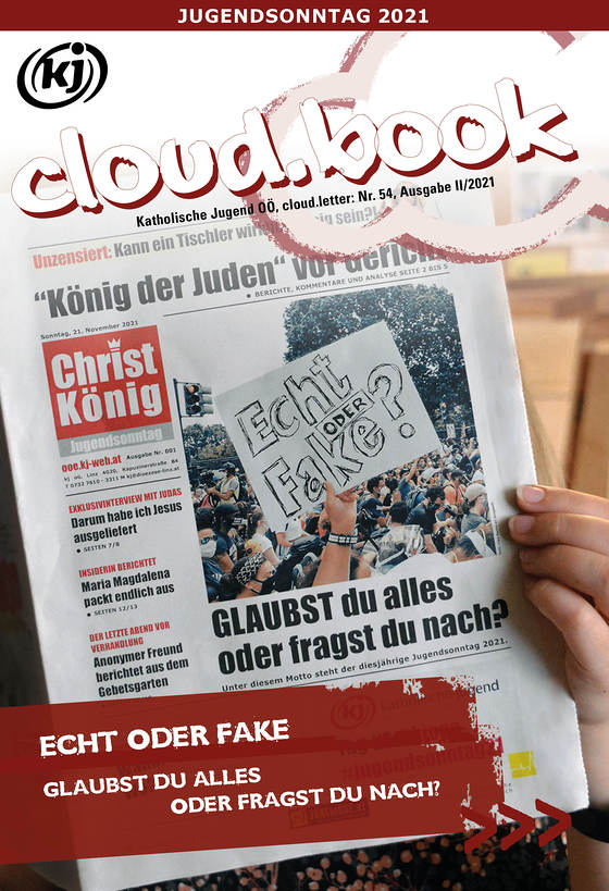 Mit unserem heurigen Jugendsonntagsplakat haben wir versucht, eine möglichst reißerische Berichterstattung auf einem imaginären Druckwerk darzustellen - passend zum Christkönigsonntag. Wenn du das Plakat vergrößert verwenden möchtest (Vorschlag siehe kj cloud.book Ausgabe II/2021, Seite 17), haben wir dir hier ein paar Druckvorlagen erstellt: