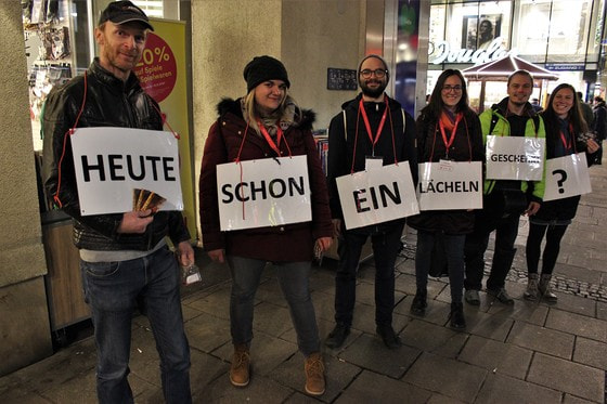 Entlang der Landstraße Linz machten sie – rückwärtsgehend – darauf aufmerksam, dass die Vorweihnachtszeit für viele Menschen, die im Handel tätig sind, oft zur Belastungsprobe wird. Für sie bedeutet die „ruhige Zeit“ im Jahr meistens das Gegenteil. Mit einer präsenten Botschaft und einem süßen Dankeschön setzten wir ein solidarisches Zeichen für ein achtsames Miteinander, vor allem zur Weihnachtszeit.