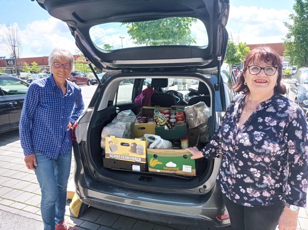 Obfrau Martina Hofbauer und Maria Riegler kauften Waren im Wert von ca. 230 Euro und spendeten sie im Namen der KfB Maria Königin einer Flüchlingsfamilie