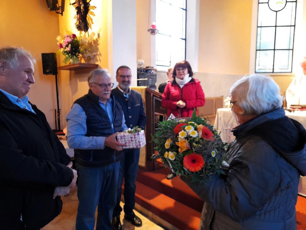 Die Vorabendmesse wurde von der Frauenrunde musikalisch gestaltet. Im Anschluss wurde unsere "Hanni" für ihre 35-jährige Obfrau-Tätigkeit geehrt. Im Namen der Pfarre überreichte ihr Amstler Kurt eine Marienstatue, die Msgr. Hofer gleich weihte.