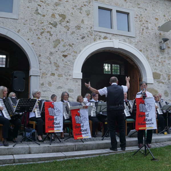 An dem schönen sonnigen Sommertag fand am Abend im Hof des Kaplanstockes ein besonderers Konzert statt - ein Oldies Abend mit Wunschkonzert. Das Publikum durfte selbst die Auswahl der Musikstücke im zweiten Teil bestimmen. Die Gerstl Musi spielte mit Begeisterung die Schlager.