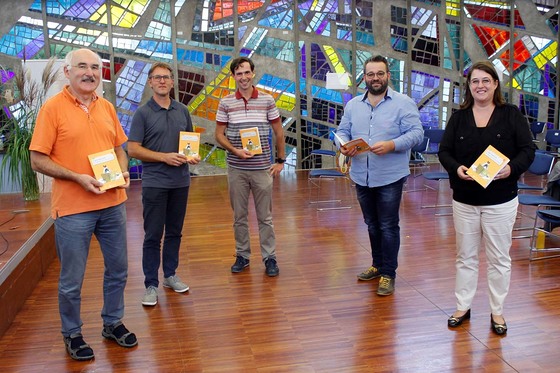 Präsentation der neuen Bibelbroschüre „1 gute Nachricht“; Dr. Franz Kogler, Dipl. Päd. Manfred Hofmann MA, MMag. Dr. Reinhard Stiksel, Mag. Daniel Neuböck, Mag.a Gabriele Eder-Cakl (v.l.n.r.)